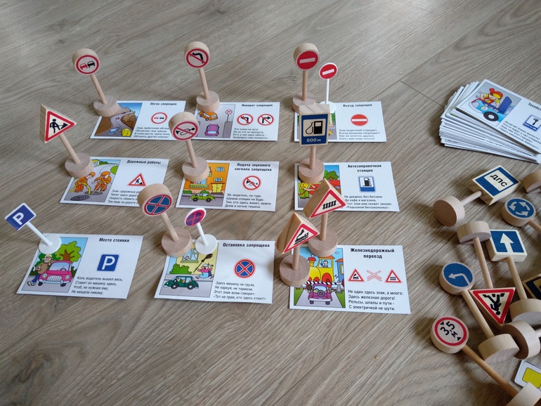 В первые пару раз мы использовали карты лото и имеющиеся дома деревянные знаки. Я читала стихотворение, а сын угадывал знак.