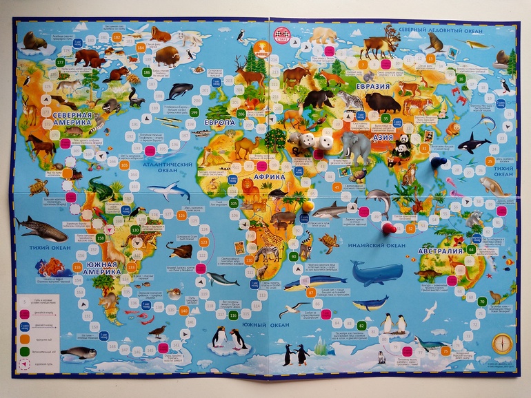 Линейные ходилки у моего сына не сказать, что в почете, но здесь это скорее игра-разговор, игра-фантазия. Двигаясь по полю, мы обсуждали, где находимся в настоящий момент, кого встретили, какие у нас от такой встречи эмоции. Время провели за ней приятно, но сын сказал, что побродить по карте без кубиков было бы еще интересней. 200 клеток с 1 кубиком - это, наверное, путешествие пешком))) бесконечное)))
