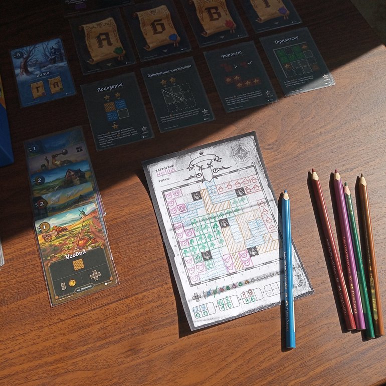 В Картографах движок построен на картах. Игра получается тактической. Выбор даже из двух фигур есть не всегда, зато игрок сам определяет в каком именно месте карты он разместит новый фрагмент. Взаимодействие соперников минимально, хотя монстры на картах и выглядят устрашающе, но урон наносят вполне поправимый.