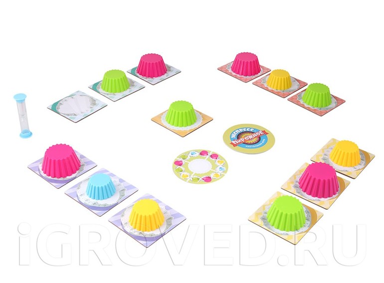 Эта игра предлагает проверить, насколько сплоченная у вас команда. Ведь действовать надо одновременно, выполняя общее задание. Переставляйте формочки с тарелки на тарелку, следуя правилам перемещения, и соберите пирожные, указанные на карте цели. Выполнили задание? Нет времени утирать пот со лба! 7 минут в песочных часах истекают быстро, а следующая карта задания уже открыта!