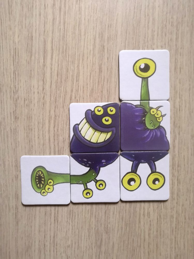 При отсутствии большой любви к Детям Каркассона у младшего сына и нежелание играть с нами в Каркассон старшим сыном Каркассоно-монстро-фабрика воспринята обоими детьми на ура. Для старшего игра, конечно, простовата, а шестилетке в самый раз. Он не только по правилам играет, но и просто, как пазл, собирает.