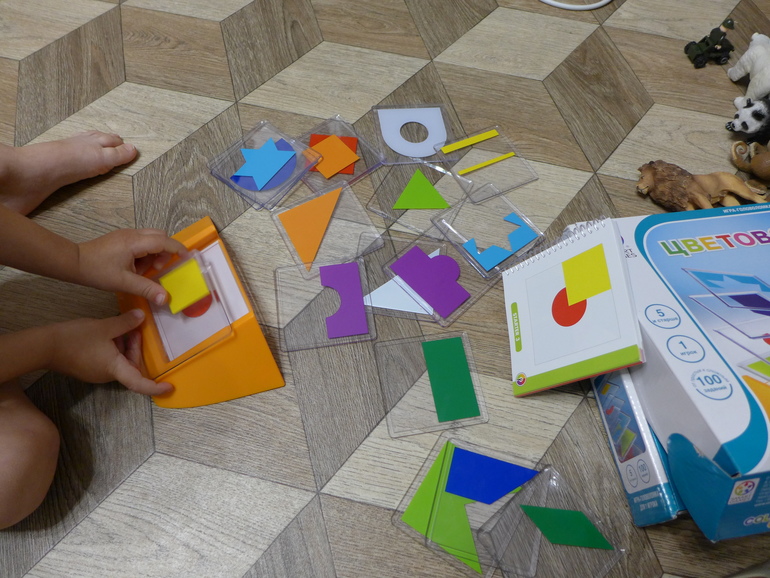 А ещё он удивил, когда принёс коробочку Цветового кода. С ходу собрал сам 10 заданий. Потом устал, стал нюниться, баловаться - отложили. Я только уточняла какие детали нужны и правильно ли он их поставил, сравнивая с заданием.