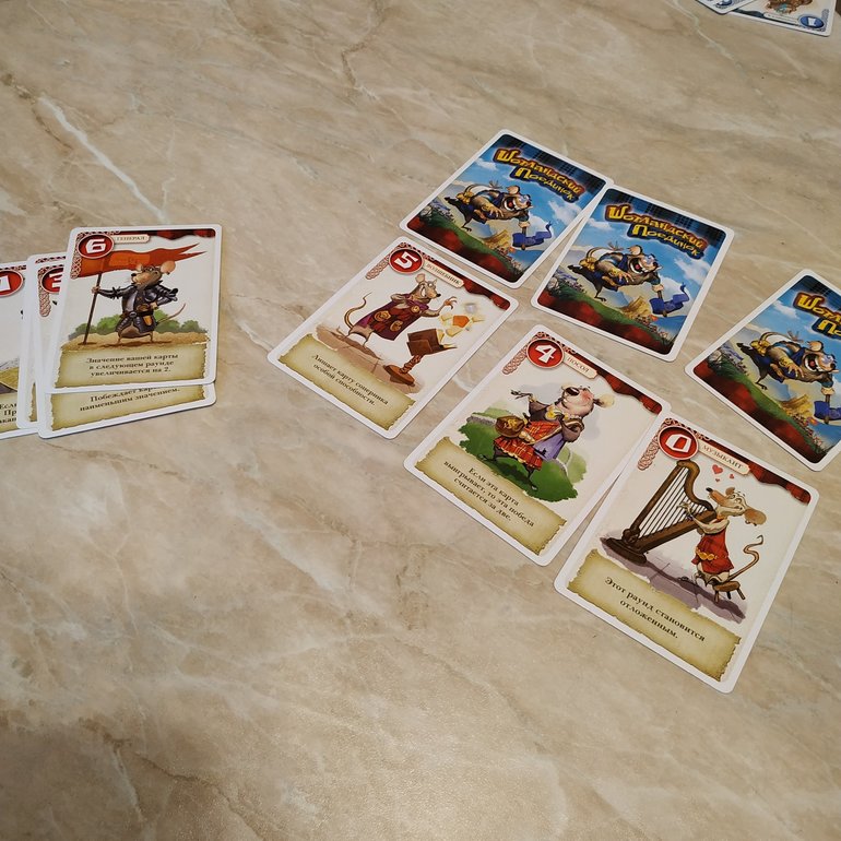 Знаю, что в свое время игра была лидером, но к сожалению ее сейчас не достать практически нигде, даже барахолка не блещет количеством. Хорошая игра на просчёт карт, удачу и предугадывает действий игрока. Дети рады, что поиграли, но не сильно она их заинтересовала. А мне понравилась, быстрая, компактная дуэлька, интересная выкладка и решение победы в картах)))