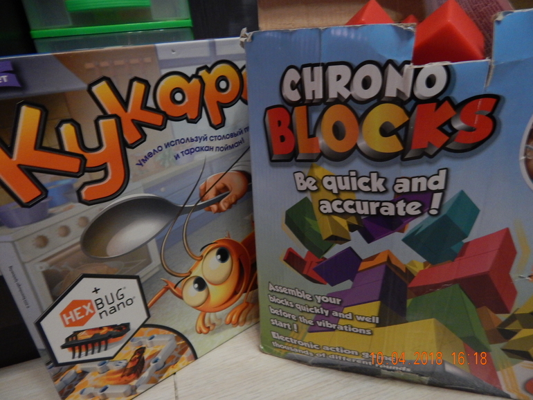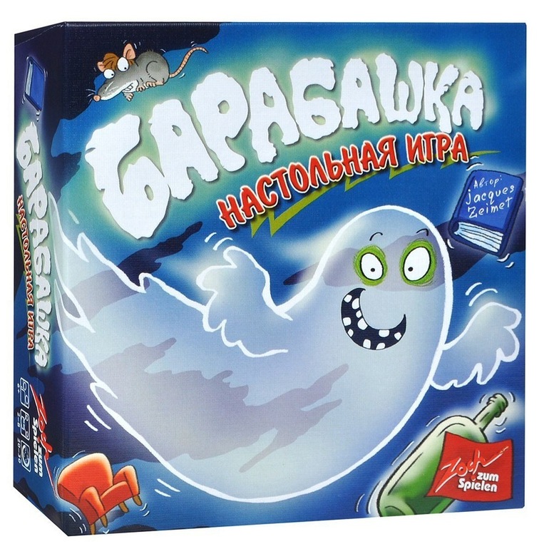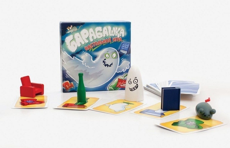 5 деревянных фигурок раскрашены каждая в свой цвет. Они же попарно изображены на карточках. Да только цвета часто перепутаны! И нужно схватить именно ту фигурку, ни образ, ни цвет которой на карточке не упомянут. Мгновенный перебор всех вариантов в уме заставляет мозги вскипать, а правильный ответ вызывает эндорфиновое цунами!))) Что интересно, дети намного чаще обыгрывают взрослых. Поэтому "Барабашка" - отличный вариант для переменки между другими занятиями.