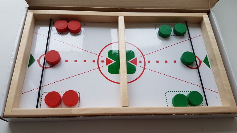 Я выигрываю пока у всех, хотя особой меткостью не отличаюсь. С сыном играем по очереди (он и сам с собой играл), с дочкой на скорость, игра длится 2-3 минуты, и все мои фишки на стороне соперника. И это еще долго 😁.