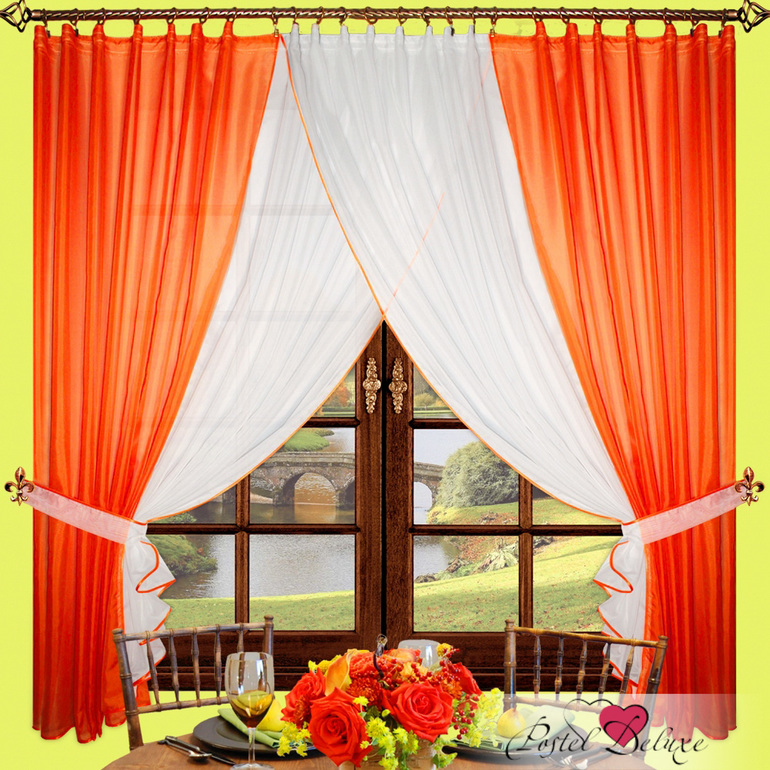 Купила веселенькие легкие ярко-оранжевые занавесочки на кухню![]()