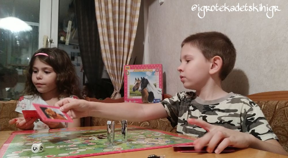▶️ Лошадки от @zvezdagames очень полюбились дочке. Она готова просто рассматривать часами карточки самих лошадок. Хотя не прочь и поиграть в саму игру. Игра это интересная ходилка, где попадая на определенные клеточки поля ваши лошадки будут соревноваться в весе, росте, высоте, ловкости и выносливости. Старший тоже не прочь поиграть в лошадок. А ещё ловите наш #хоумрул - карточками лошадок можно играть по правилам игры "Чей кот больше?". И в этой игре, можно ещё и выбирать один из нескольких параметров лошадок.