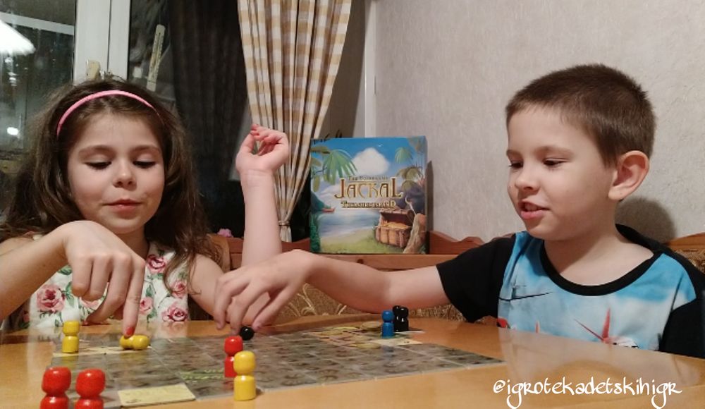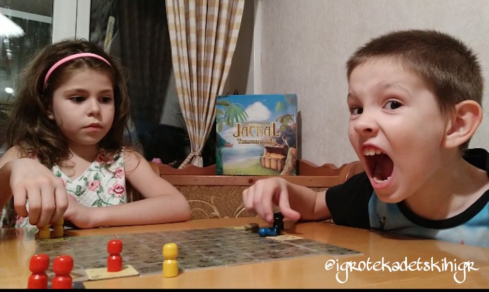 ▶️В субботу добрались только до Шакала. Остров сокровищ от Magellan - любимая игра сына. Начали в нее играть с 5 лет. Игра легкая- ходишь, переворачивает тайлы и ищешь сокровища. Если на пути встаёт вражеский пират, то его можно отбросить обратно на его корабль. И наш #хоумрул - чтоб игра не затягивалась мы уменьшаем количество тайлов.