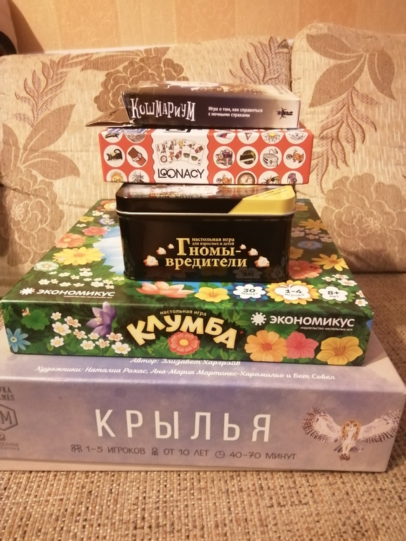 У нас любимой игрой месяца стала игра На корм рыбам,которую в октябре и открыли,игра очень понравилась,думаю будет долгоиграющей.Также часто появлялись на столе наши старички Убонго,Сороконоги,Каркассон детский и детский Каменный век,с мужем Руммикуб.Куплены Остров кошек и Азул,еще не играли.Жду тоже с М.Ш Последний день Атлантиды,одно не пойму там две версии с разной ценой,в чем разница не понятно,купила которая дешевле,посмотрим.