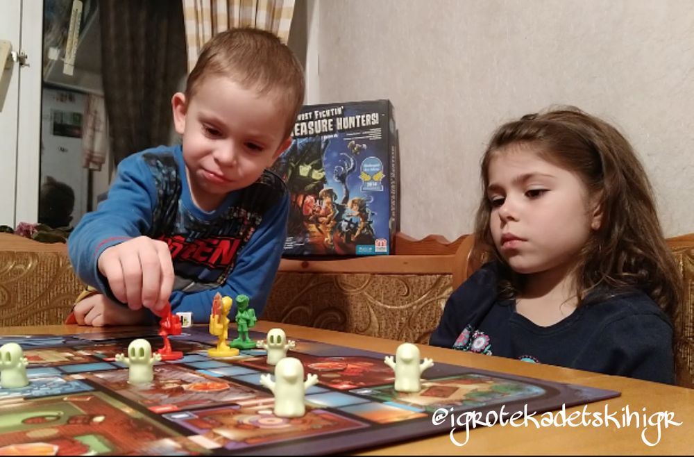 ▶️"Охотники за сокровищами против призраков👻" от Mattel games - кооперативная игра, где игрокам необходимо вынести из дома восемь сокровищ до того как дом наводнят красные призраки. В этот раз нам совсем немного не хватило до победы. Но дети совсем не были растроены. Игра им очень нравится. Особенно своими замечательными компонентами, которыми они любят поиграть после.. Правда сейчас игру редко можно встретить в продаже.
