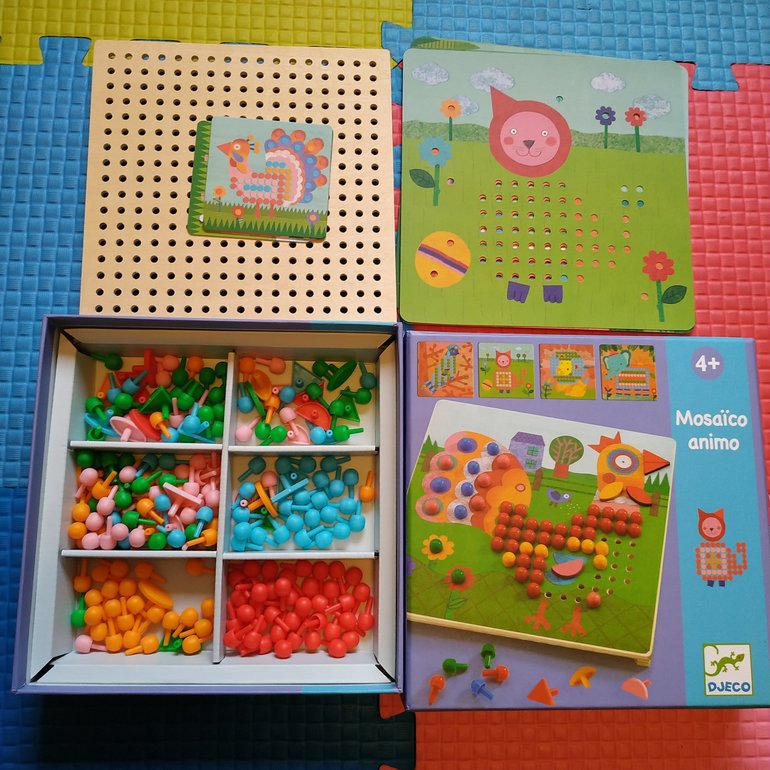 Ох, уж это Нану. Зачётная игра на память. Если в начале игры все идёт ровно, запоминается хорошо, то в конце уже память замыливается видимо, и запомнить все труднее. Учу дочку применять принципы мнемотехники, проговаривая предложение связанное с предметом и цветом крышки. "Я накрываю синей крышкой самолёт, который летит в синем небе"....