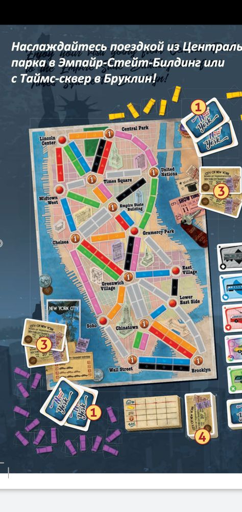 В Нью-Йорке получаешь дополнительные бонусы за соединения достопримечательностей, вся остальная механика такая же.