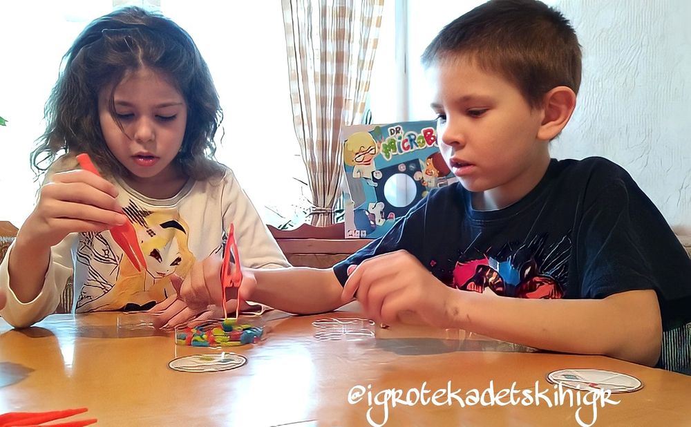 @blueorangegames - игра на логику, внимание и ловкость рук. Пинцет очень удобный, а микробы прорезиненные для лучшего захвата. Игра детям нравится. Хотя игры на скорость у нас не так популярны. Дети разновозрастные и скорость реакции у них разная. Поэтому, чтоб дети не обижались мы иногда используем свои #хоумрулы: в свой ход каждый берет свою карточку и пытается ее выполнить за определенное время правильно. Если все сделано верно игрок забирает карточку себе, если же нет, то ход проигран и карточка идёт в сброс.