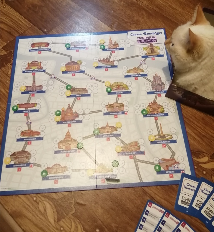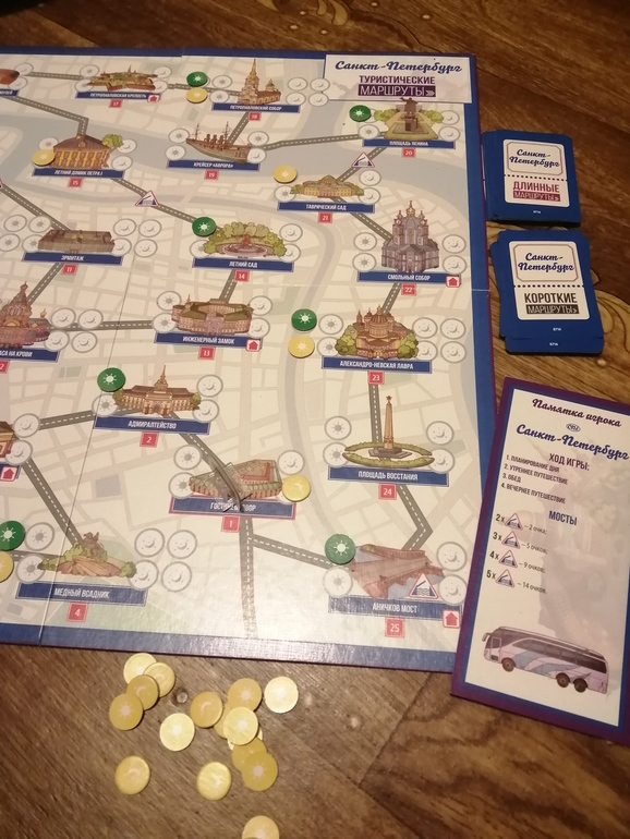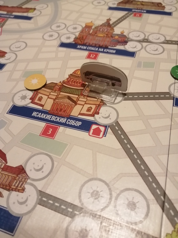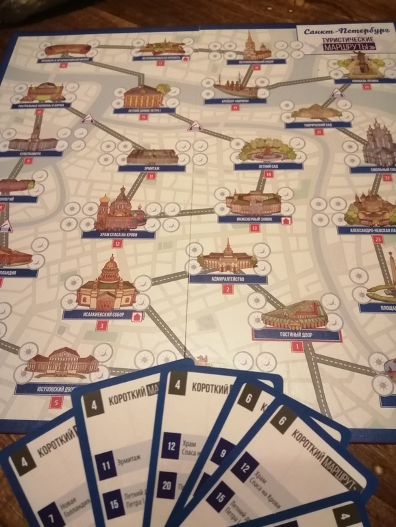 Мне больше нравится играть на поле Санкт-Петербурга. Здесь можно получить дополнительные очки за посещение мостов и особые остановки с крышами.