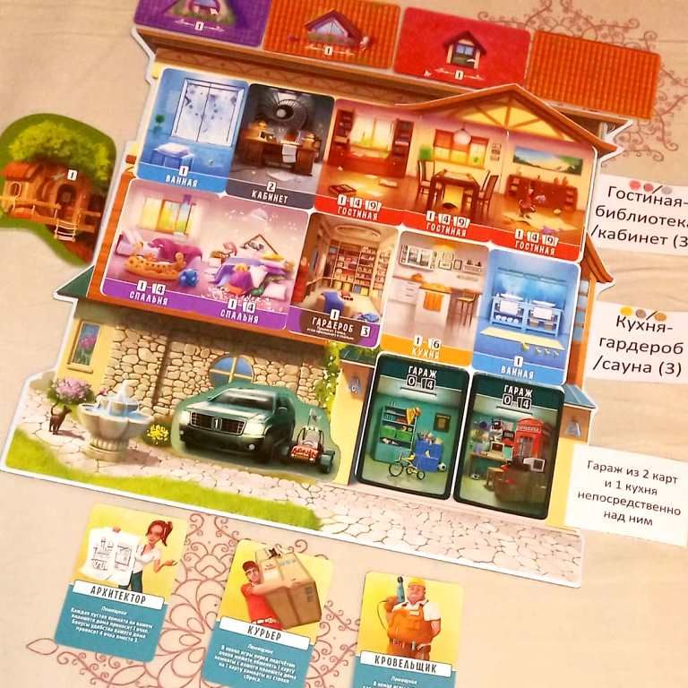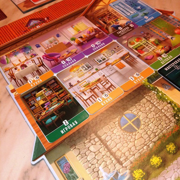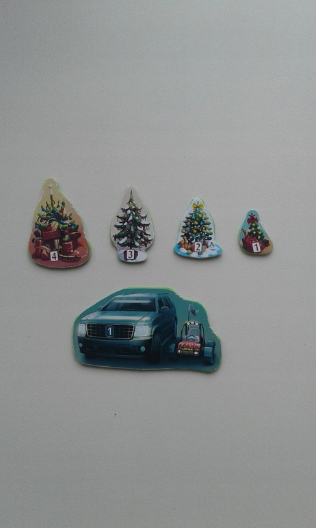 Сыну тоже нравится игра, причем, как забирает жетон 1го игрока, так старается и не отдавать , даже иногда в ущерб себе, и зорко следит, что собираю я, и сбрасывает карты, стараясь максимально подкузьмить. Есть в пнп Домика минидополнение, как раз к предстоящему празнику - жетоны рождественских елок разной "стоимости". Можно 1 уже полученный жетон обменять на наряженную елочку и поместить в любую комнату. Иногда это выгоднее, тк принесет больше баллов. Но красавицу можно взять только 1 за всю игру. Не знаю, есть ли в оригинале жетон машины, мы за нее активно боремся с сыном.
