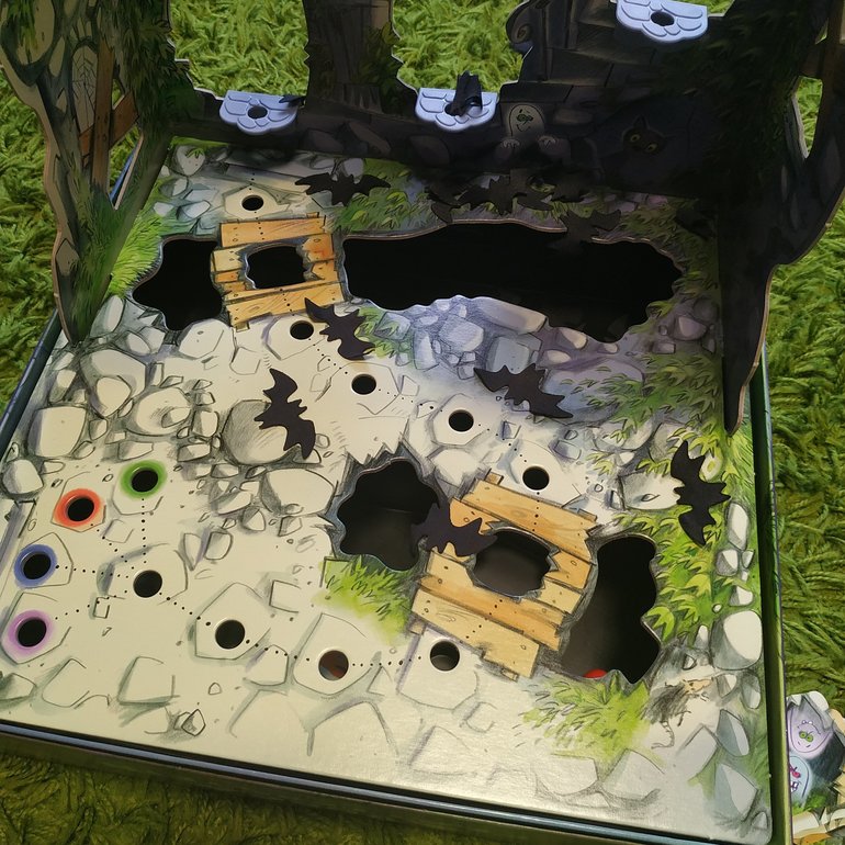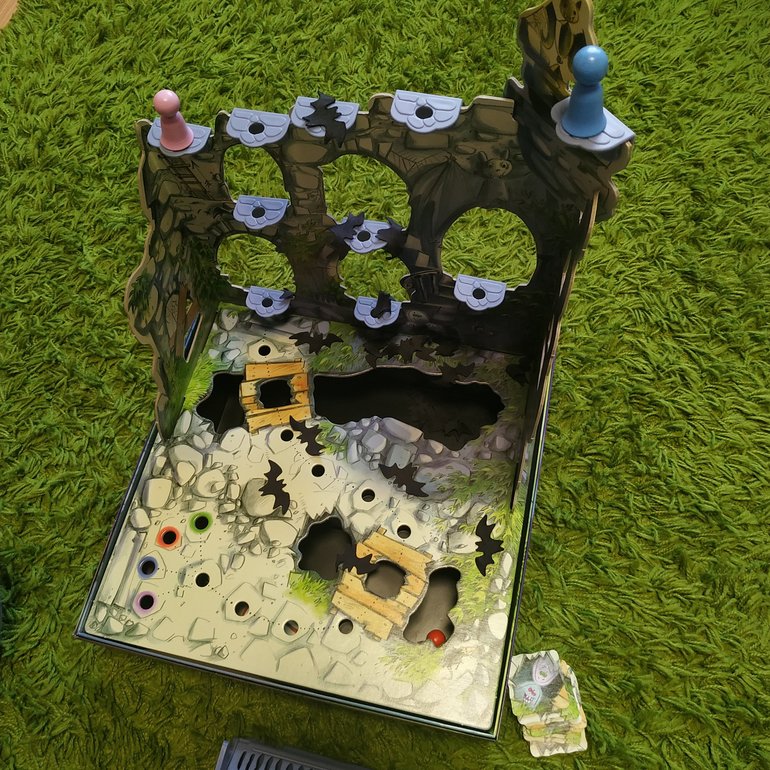 Не знаю правильно ли написала по русски. Перевода правил нет, нашла в интернете. Игра из серии "себе вряд ли куплю, но попробовать классно". Да и по возрасту она нам не подходит... Мальчишкам откровенно поздно, хотя летучих мышей пуляли с удовольствием. Ну если честно, я тоже с азартом их остреливала на стены замка. Главное совсем не понятно, что надо сделать с пулялкой, чтобы мышь попала куда надо. Все получается по разному... Алгоритм отследить не удалось, вывод - игра на удачу))) Но качество супер, что ни говори...