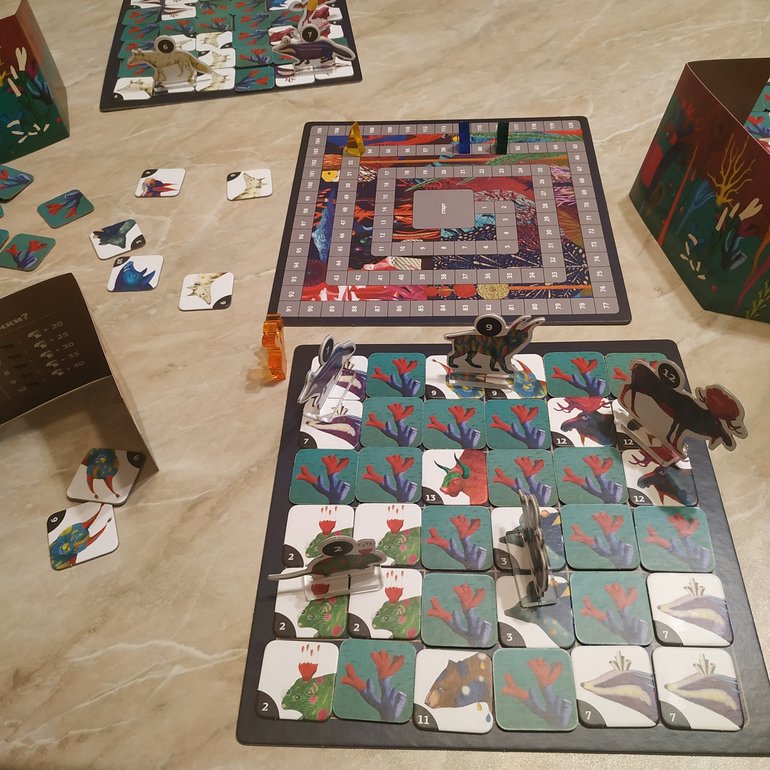 Случайно удалось поиграть, чему я очень рада. Довольна милая и спокойная игра. Детям понравилось, но себе купить не попросили. Из минусов для меня - мне животные показались странными😟 и момент с мешочком мы не использовали, а просто тайлы выкладывали с базой рядом стопочкой, как в Каркассон.