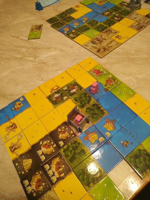 Лоскутное Королевство как сейчас помню было куплено очень решительно. Как же она мне понравилась сразу, эта игра)) сейчас извините, немного более спокойно уже к ней отношусь, но выиграть у сына мне удается редко, хотя вот как раз в этот раз я и выиграла по очкам))) чаще играем вдвоем с ним, строим 7на7 королевство.