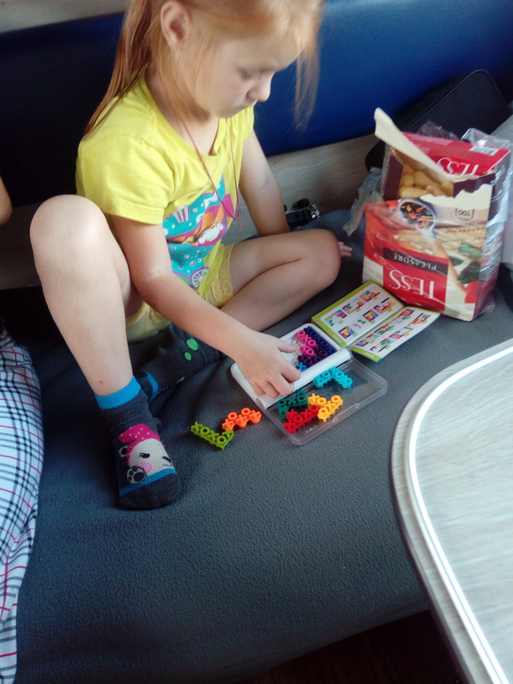 Но кое о чём расскажу. И так, сначала нас ждал поезд, на 2 дня и 3 ночи, плацкарт, с двумя детьми-5лет и 2 года, и я со своей мамой. И с рюкзаком игр!