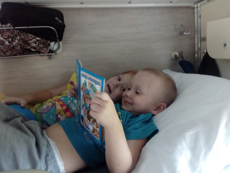 Первый день в поезде был почти расслабленным, все наслаждались поездкой, новыми впечатлениями. Достали книжки-это хорошо!