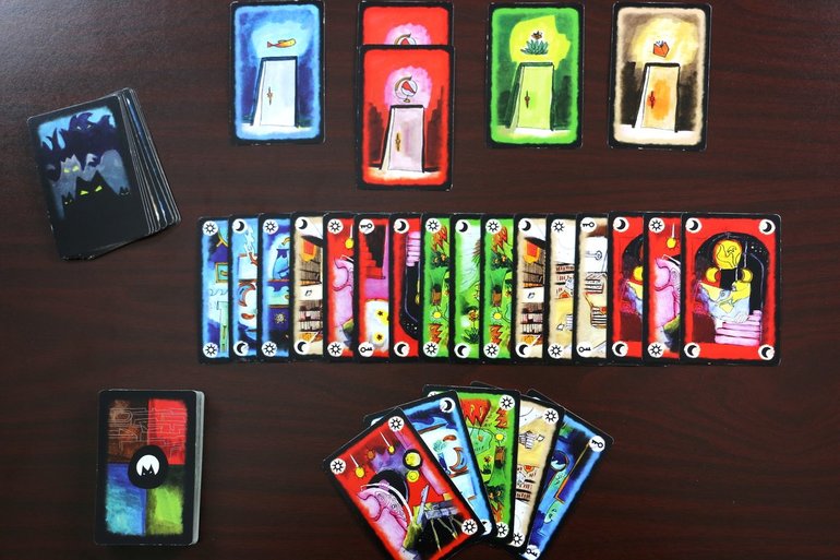 Это пасьянс, в котором надо открыть 8 дверей прежде, чем закончится колода. Помогают в этом ключи, а мешают кошмары. Поиграв и в реальную версию, и в виртуальную, я поняла, что на планшете играть комфортнее. Программа сама за тебя тасует колоду и следит за правилами, игроку остаётся самое приятное, принимать решения.