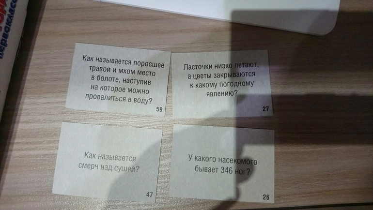 Всё вместе в субботу играли только в викторину первоклассника. И хотя на игре стоит 5-8 лет . Старшая дочь в почти 10,не все ответы знает, а сын в 4,на элементарные может ответить. Карточки неравноценные совсем. Но на твыо она и детская версия, чтобы играть можно было всем.