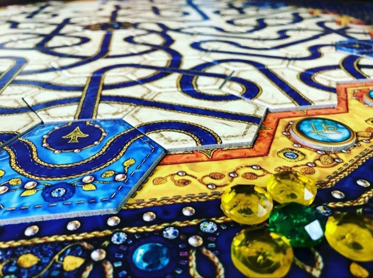 Дети тоже любят игру. В отличие от других абстрактов, которые кажутся им бессмысленными, нелогичные действия, странный подсчет очков и т.п., здесь все предельно конкретно: понятна цель и понятен способ ее достижения. Дети, как сороки, тащат сверкающие камушки в свои гнезда. С дочкой (3+) я играю без взаимодействия, просто как в игру-гонку: каждый катит свои камни в свои ворота, друг другу не мешаем, кто больше успел, тот и молодец. Мы даже ворота ставим не через один, а подряд: с одной стороны три ее, с другой - три моих, чтобы ей не приходилось тянуться своими коротенькими ручками через весь стол 🤗 С племянником (5+) дозированно добавляю соперничества за камни, играем не так жестко, как с мужем, но и не так миролюбиво, как с дочкой.