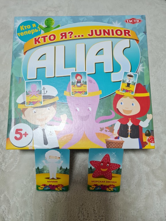 Очень уж милые в ней карточки-задания... Правда, младший тут же выкрикивает, что на картинке у старшего, не давая тому угадывать. Приходится подбирать старшему такие картинки, которые у младшего вызываю затруднения. Так мумию он назвал "больным", а морская звезда стала "молярной" по аналогии с полярной😁
