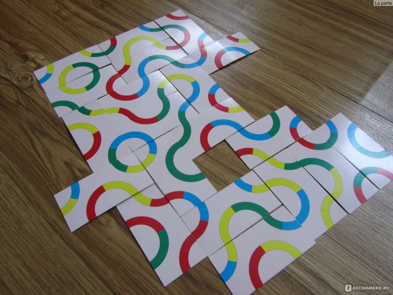 Игрокам предстоит выкладывать цветные карточки-дорожки так, чтобы хотя бы две дорожки совпадали по цвету.