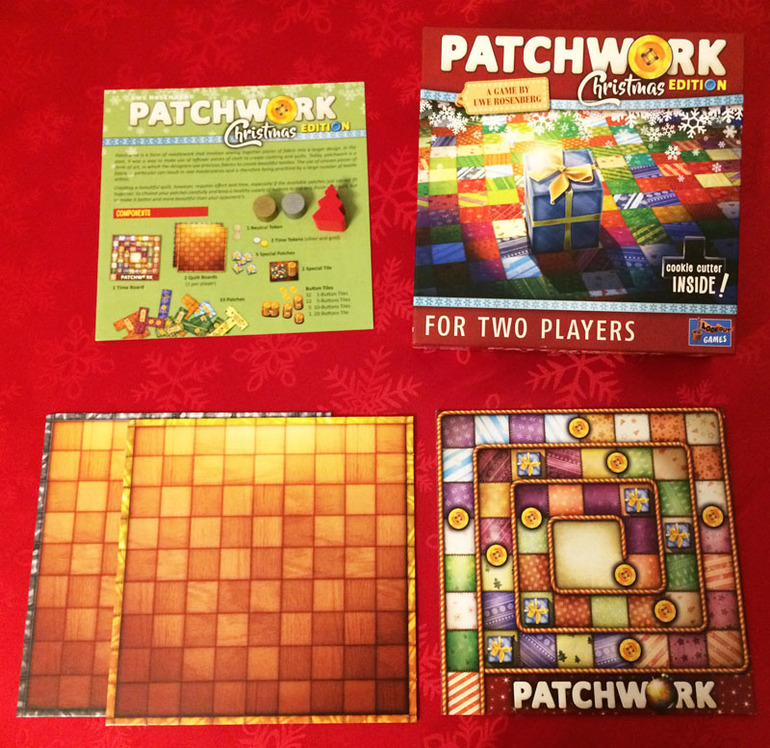 И вишенка на торте… Игра о покупке которой я упоминала не так давно в пятничных посиделках, и вот наконец то могу показать содержимое заветной коробочки.. Это всё тот же обожаемый нами Пэчворк, но в праздничном новогоднем оформлении. Было очень волнительно от ожидания того, что же ждёт внутри, опасения а вдруг начинка окажется не такой «вкусной» как хотелось бы, но чудо свершилось, и у меня конечно же восторг восторг!!! Из-за праздничной суеты нам сегодня не удалось сыграть, поэтому покажу пока все детали в рамках как есть
