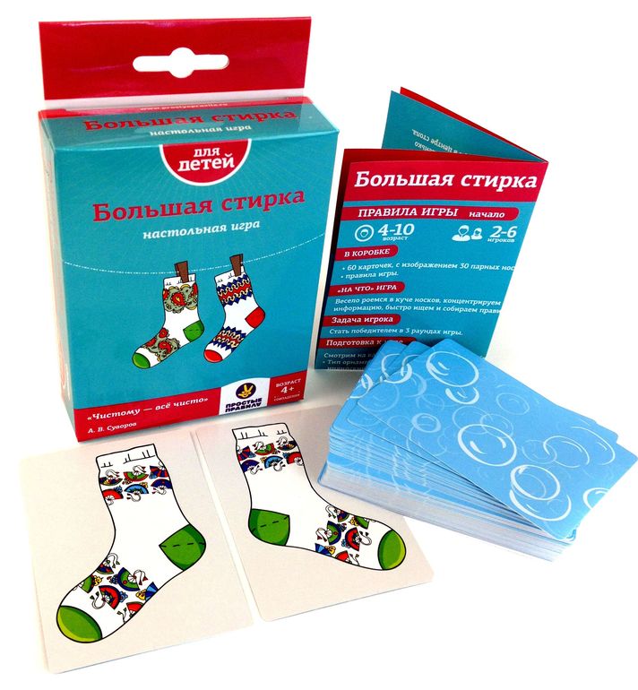 Большая стирка у нас есть, но по правилам даже дочке сложно, а ей 5. Просто искать пары можно конечно, но скучновато. У нас эта игра хитом не стала.