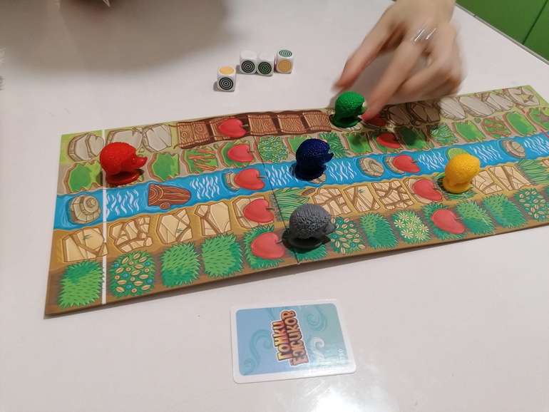 Вечер начался с ненапряжной игры Гонки ёжиков. Но мы всё же большие любители поскрипеть мозгами, поэтому особого удовольствия от этой игры не испытали.