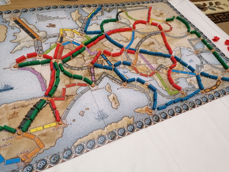 В этот раз в Билет на поезд мы совершенно не мешали друг другу: вольготно строили свои перегоны. Поэтому результаты у всех были высокие. И хотя я была довольна своей сетью дорог и своей победой, интриги мне всё же не хватило.