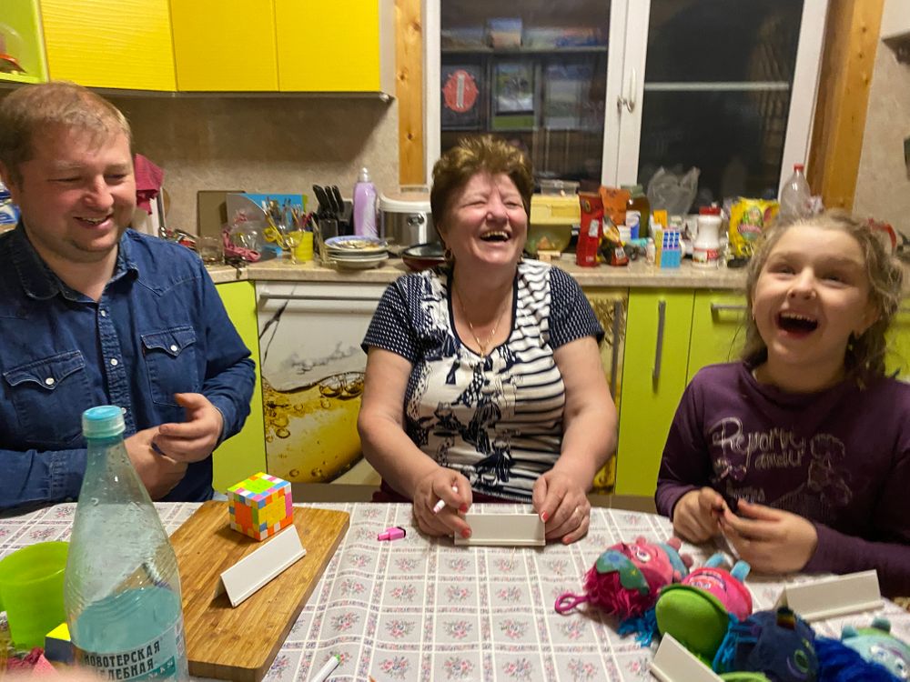 Прекрасное качество, много вариантов (нарисуй, изобрази, объясни, буквенная подсказка, задание для всех). Игра командная (ох, как много зависит от партнера)). Но пока она нам даётся сложнее, плохо справляемся с некоторыми заданиями, а уж если бомба тикает - я стопорюсь)))