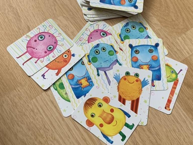 В доббль мы тоже ему немного поддаёмся, но уже гораздо меньше, частенько он первым находит нужную картинку, а иногда бывает и я могу зависнуть.