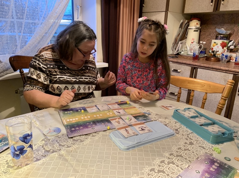 Начал, наконец, понимать суть детей Каркассона, только не научился ещё делать гадости другим, как старшая сестра 😄, поэтому частенько проигрывает, помогая оппоненту.
