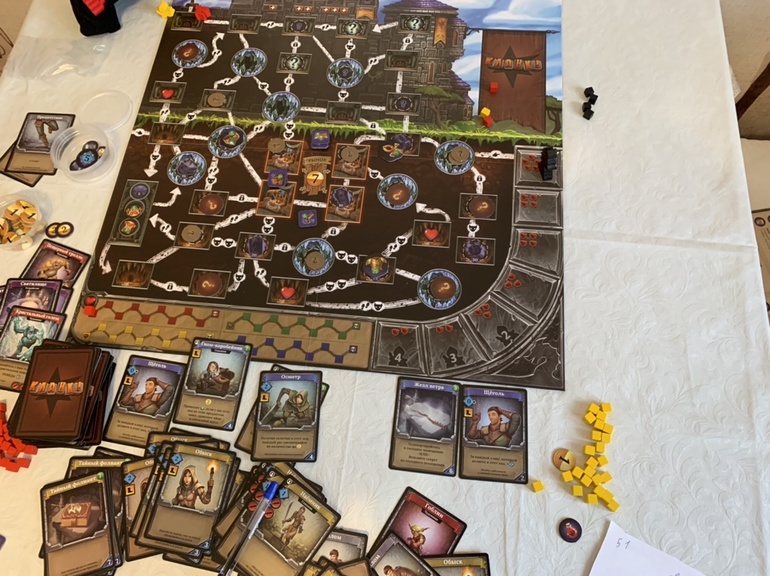 Игра вообще-то не девочковая, но Маргарите она очень понравилась. Сражения с чудовищами, поиски сокровищ, дракон, который так и норовит попортить Вам здоровье)). Вроде обычный колодострой, но как атмосферно играется. В игре присутствует элемент проверки на жадность, как в предельном погружении, застрянешь в Подземелье чуть дольше, можешь уже не вернуться 😈. Безусловно, это придаёт игре остроты. Но для полного спектра ощущение надо играть составом 3-4 человека, на двоих не так весело. Игра несложная, но тренирует и устный счёт, и навык чтения, и планирование действий (это я для родителей уже пишу 😄).