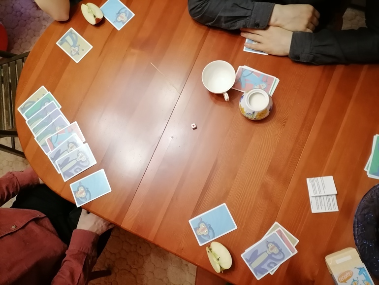 Черепашьи бега, 4 партии,и с ребёнком и без. Не знаю, чего в игре больше: тактики или везения. И мы так и не решили наверняка, как быть с карточкой "последняя черепашка - вперёд", когда они все стоят одна на одной. Вроде как в правилах, можно выбрать любую, но ведь на самом деле последняя только самая верхняя... Да и слишком легко выиграть тогда, с этой картой. А может и нет, мы ещё учимся играть, но игра определённо заслуживает своих похвал.