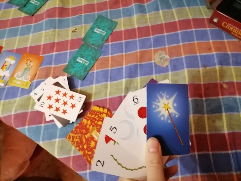 Со скоростью улитки - 2 партии. Дочка любит математические игры, хотя эта ей ещё тяжело даётся. Вот Спящие королевы уже почти влегкую, а тут нет.. Но играть всё равно просит. Я помогаю выстраивать комбинации, иногда мы даже предлагаем друг другу нужные карты, чтоб игра шла бодрей. Уверена, когда соперники станут равными, мы ещё ого-го как поиграем, я вижу тут перспективу.
