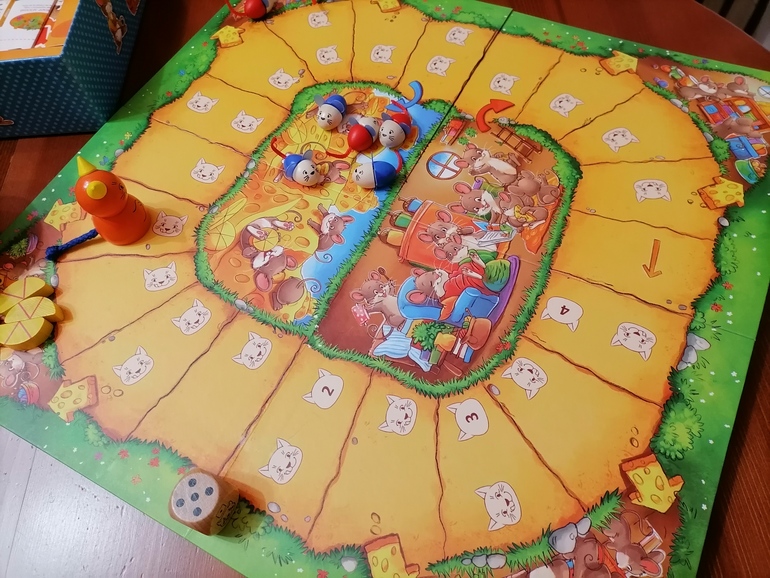 Сырный край, 3 партии. Подарок от Деда мороза. Ну очень милые компоненты! Эту игру, наоборот, мне самой очень не терпелось открыть и опробовать, и я рада, что это случилось. Игровой процесс понравился, особенно при игре втроем остро ощущалась конкуренция за сыр, и приближение кошки щекотало нервы. Думаю, игра станет одной из любимых у дочки.