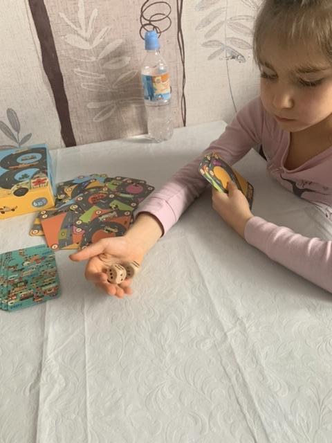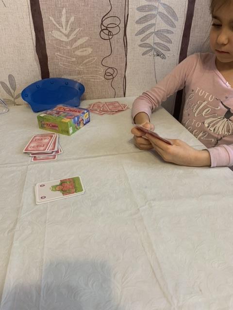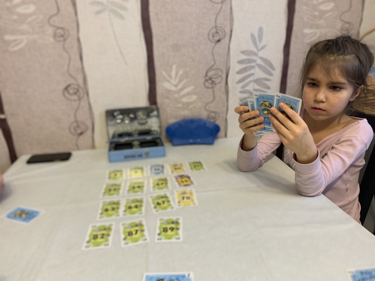 Дочка расстроилась из-за проигрыша. Почему-то она пока очень неохотно выходит в расчётах за пределы 10-ки. Из-за этого она сильно ограничивает себя в вариантах. Хорошая игра, нам ещё долго в неё можно играть, если конечно дочь согласится