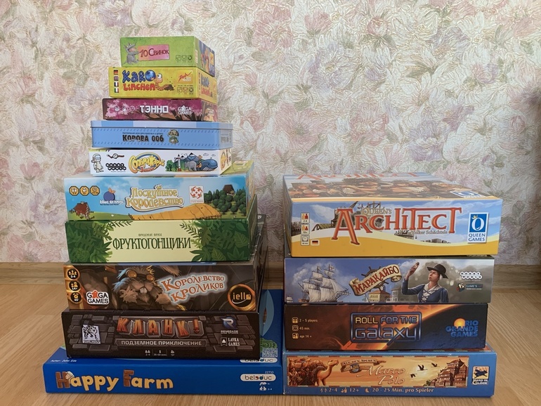 Левая стопка - игры с детьми, в ней не хватает Селестии и Ралли от Джеко. Справа - наша с мужем.