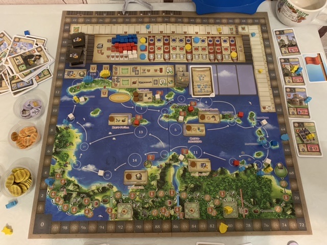 Отличная игра, когда времени немного, а после Маракаибо его было немного). Игра -гонка с интересности механиками! Мужу не хватило одного кубика для победы!