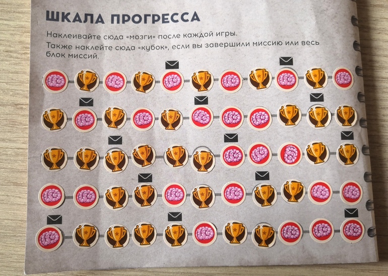 а) шкалу прогресса и наклейки, чтобы отмечать каждую пройденную партию