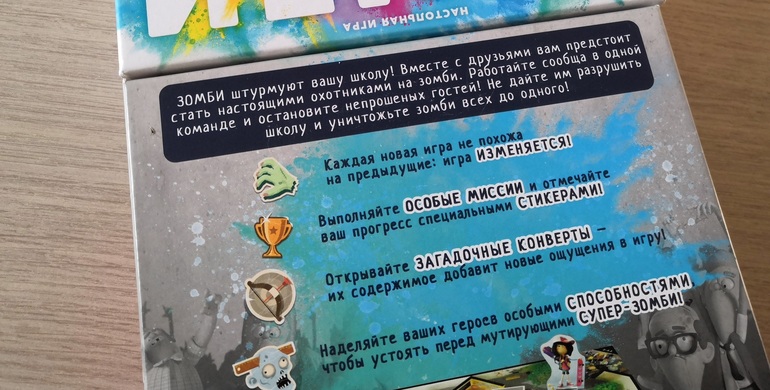 Я эту игру невзлюбила после нескольких дней нашей кампании по прохождению все квестов). Мне кажется, детям намного больше самой игры нравится именно процесс открытия конвертов с новыми свойствами персонажей и супер зомби... Из-за этого наши партии выходили немного скомканными. Дети ее любили, этого не отнять