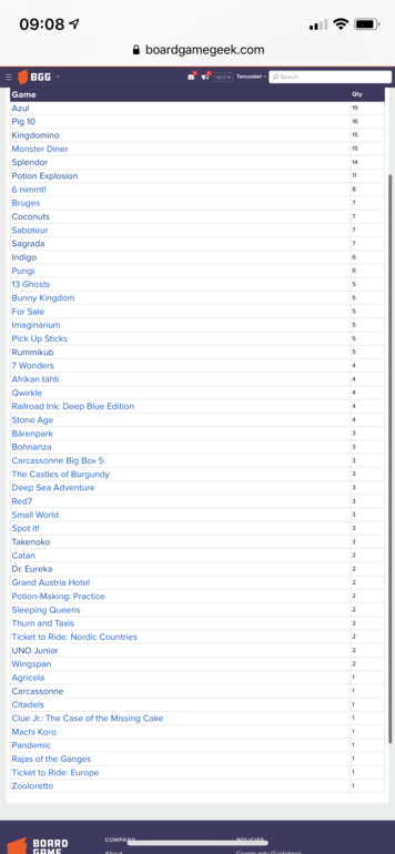 - Королевство кроликов, Имаджинариум, 13 привидений, Продано, Микадо, Руммикуб - по 5 партий.
