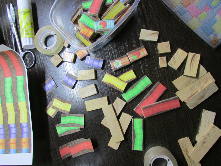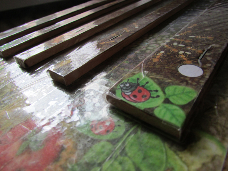 Потом я решила распечатать полосочки-бортики и наклеить их на деревянные реечки