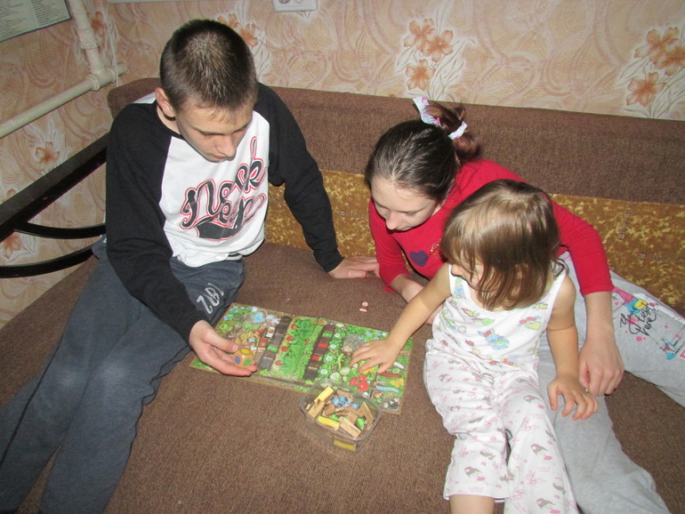 А младшую учим правилам, по её мнению, только её червячок должен быть первым, и только ему нужно подкладывать фишки🤣.