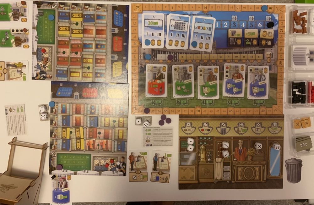 Сын выиграл с большим отрывом (синяя фишка). В начале игры я вырвалась вперёд, но в пятом раунде попала под гнев императора и получила минус 7 очков. На протяжении всей партии у меня ощущался дефицит денежных средств, я набрала постояльцев для синих комнат, т.к. наняла конюха, который позволял продвигаться по шкале императора, но заселить их не получалось из-за того, что комнаты не были подготовлены. И по шкале императора продвигалась с большим трудом. У сына же как-то очень легко получалось и комнаты открывать, и гостей заселять, и денег у него предостаточно было, и по шкале императора двигался, и дополнительные очки заработать смог. Итог: 94:58 в пользу сына. 🤷♀️ В правилах он разобрался легко, только с персоналом работать (играть) не очень хотел. Нанял только одного человека в последнем раунде, который в конце игры принёс ему 9 ПО.