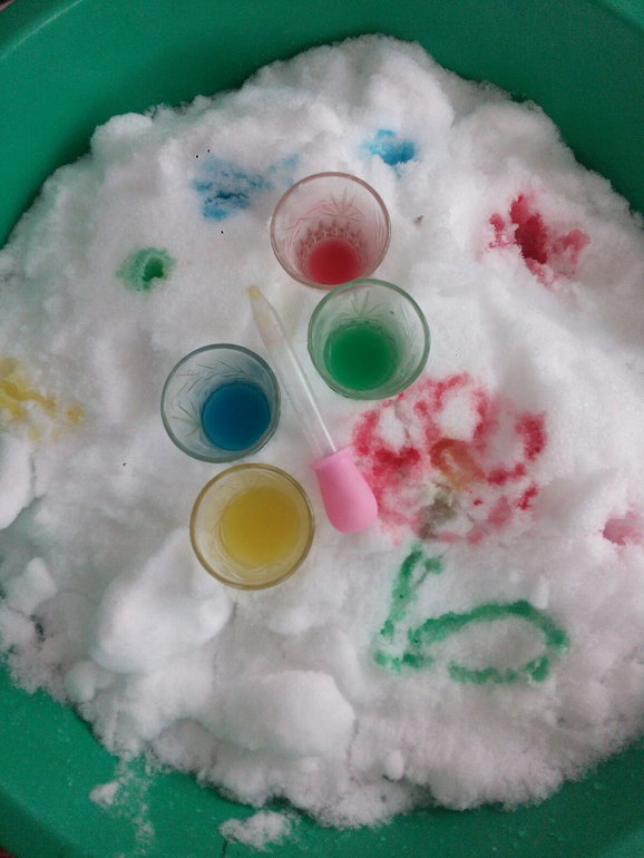 Ну и наверное самая любимая наша заниимашка из ничего 😍-это рисовать в миске снега. Жаль, такое счастье у нас бывает редко. Но как альтернативу планирую замораживать с вечера лёд.